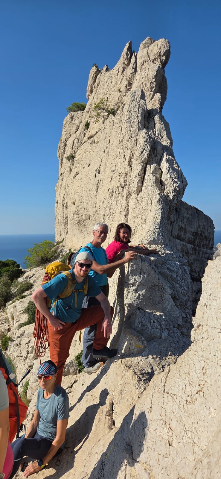 Le rythme a été soutenu : grandes voies, couennes techniques, marches d’approche parfois corsées et retours tardifs parfois après une baignade ont ponctué la semaine. Malgré l’effort, la bonne humeur n’a jamais faibli.