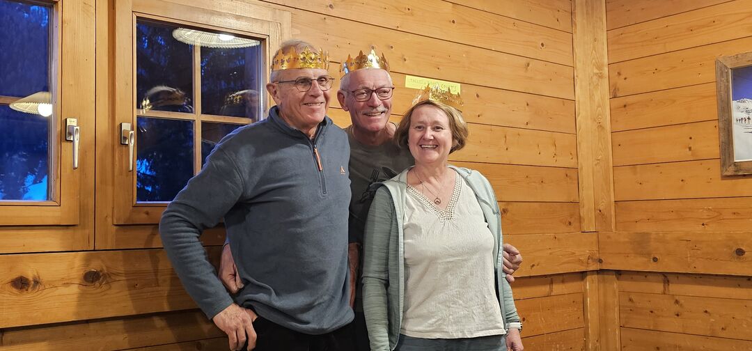 Là une belle surprise préparée par notre GO nous attend : Trois rois et/ou reines seront désignés par la découverte de trois fèves cachées à l’intérieur de savoureuses couronnes des rois. Ces trois personnes auront le privilège d’être dispensées des tâches ménagères et de cuisine ! La chance sourit à Stéphanie, André, et Alain W..