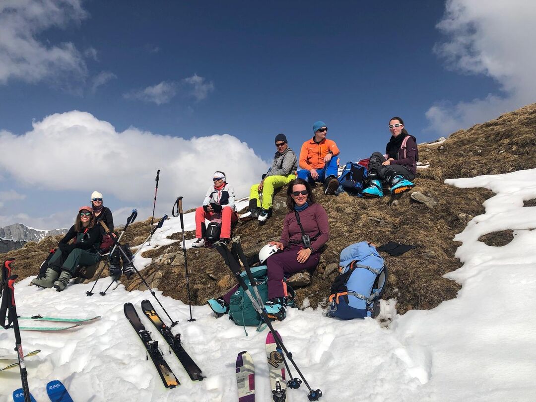 Rapidement, nous retrouvons les skis aux pieds pour entamer notre ascension ! Première partie dans la forêt !! Chemin semé de quelques embuches entre les gros cratères déneigées et un sapin barrant le passage... mais rien n'entrave la bonne dynamique du groupe.