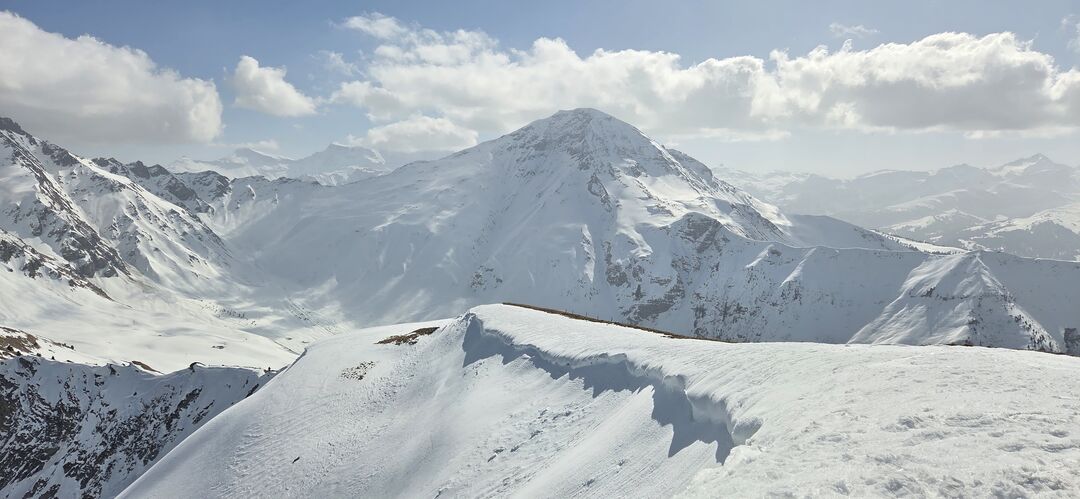 A la sortie de la forêt, la 1/2 de notre parcours est entamé. Pause méritée. Ensuite, s’offre face à nous un assemblage de petites collines, l’ébauche d’un ruisseau, le sommet du Rauflihorn qui nous fait de l'œil sur notre gauche et l'imposante chaine de montagnes qui s'élèvent comme des remparts sur notre droite. Le décor est grand, magnifique et calme. Presque pas un chat à l'horizon.