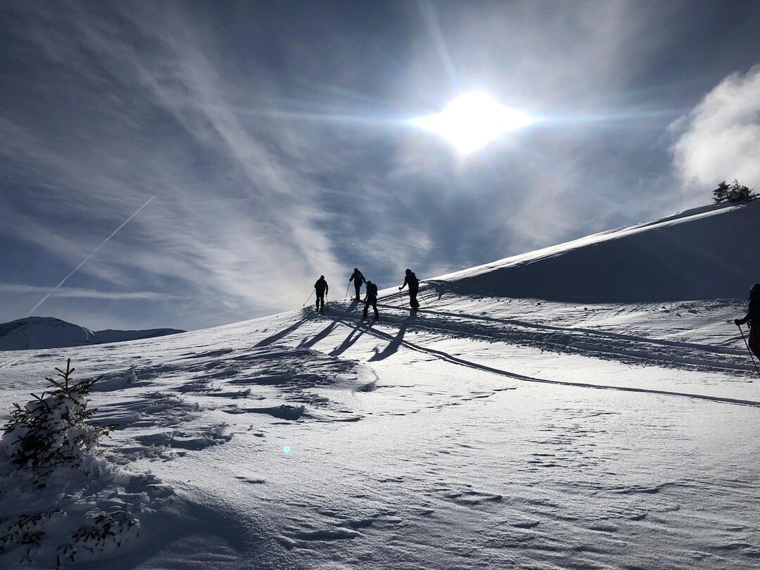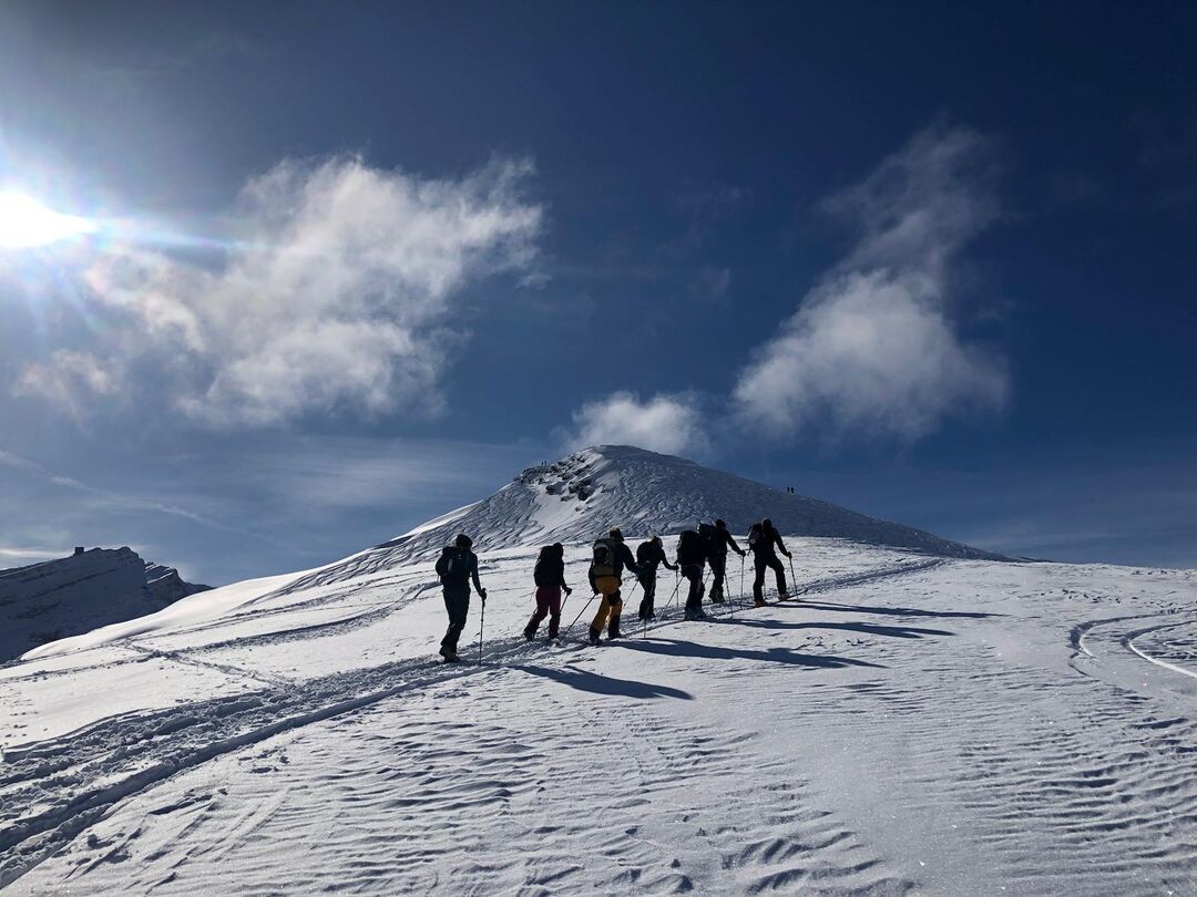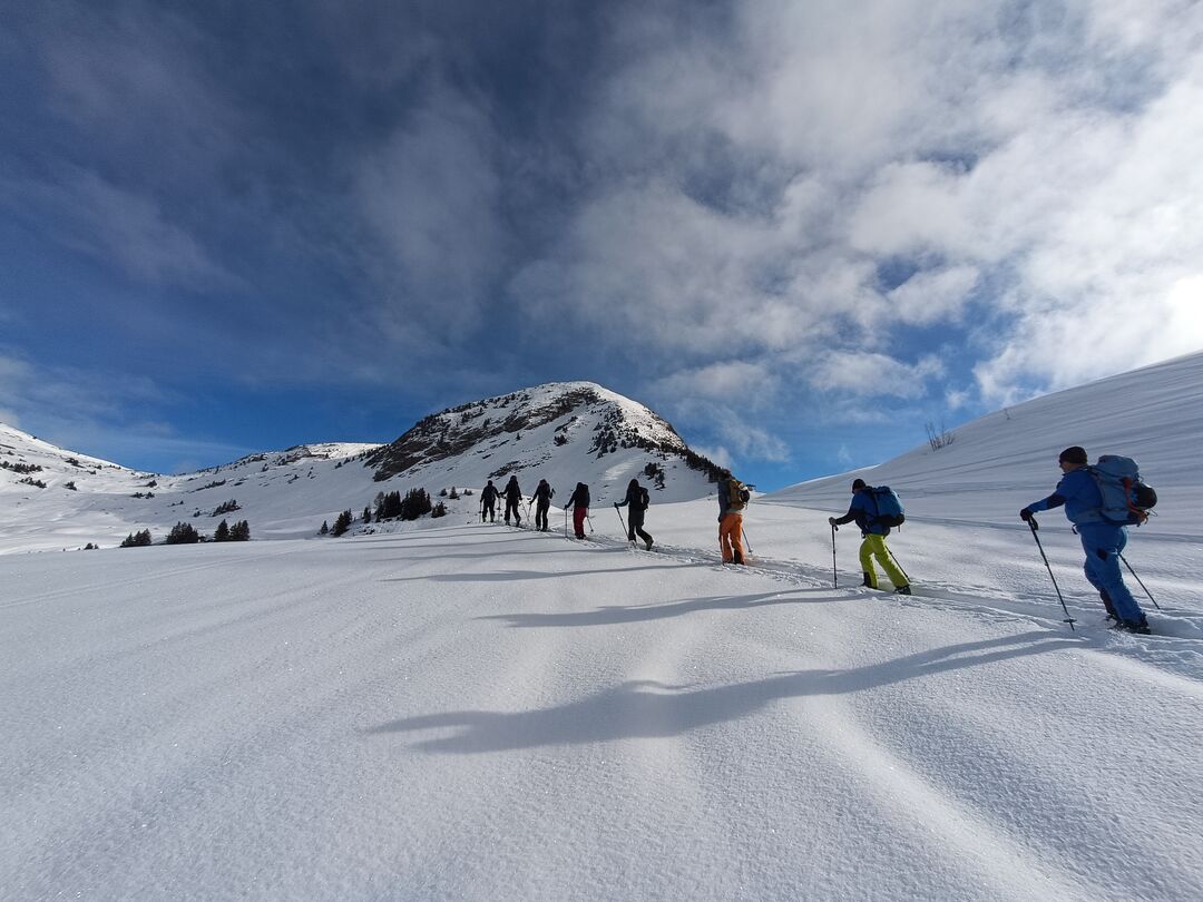 Le rendez-vous est donné à 8h50 au Col du Pillon. Après une brève montée jusqu’à l’Auberge du Lac Retaud, nous poursuivons notre progression dans la forêt, puis entre les vallons de l’ancien domaine skiable d’Isenau. La neige fraiche et le soleil sont au rendez-vous !