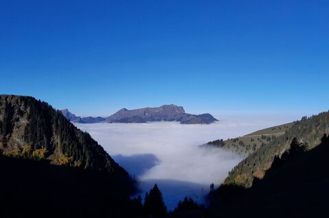 Une journée automnale comme on les aime ! Des paysages colorés, des contrastes, des nuances et une mer de brouillard à contempler voilà le décor du jour ! Une petite équipe de 4, deux participants ayant dû renoncer, s'élance dans la fraicheur matinale à l'assaut du Vanil de l'Ecri. L'ascension se déroule dans des conditions parfaites mais réclamant tout de même une attention soutenue lors de certains passages. Au Plan des Eaux, le panorama est juste grandiose !